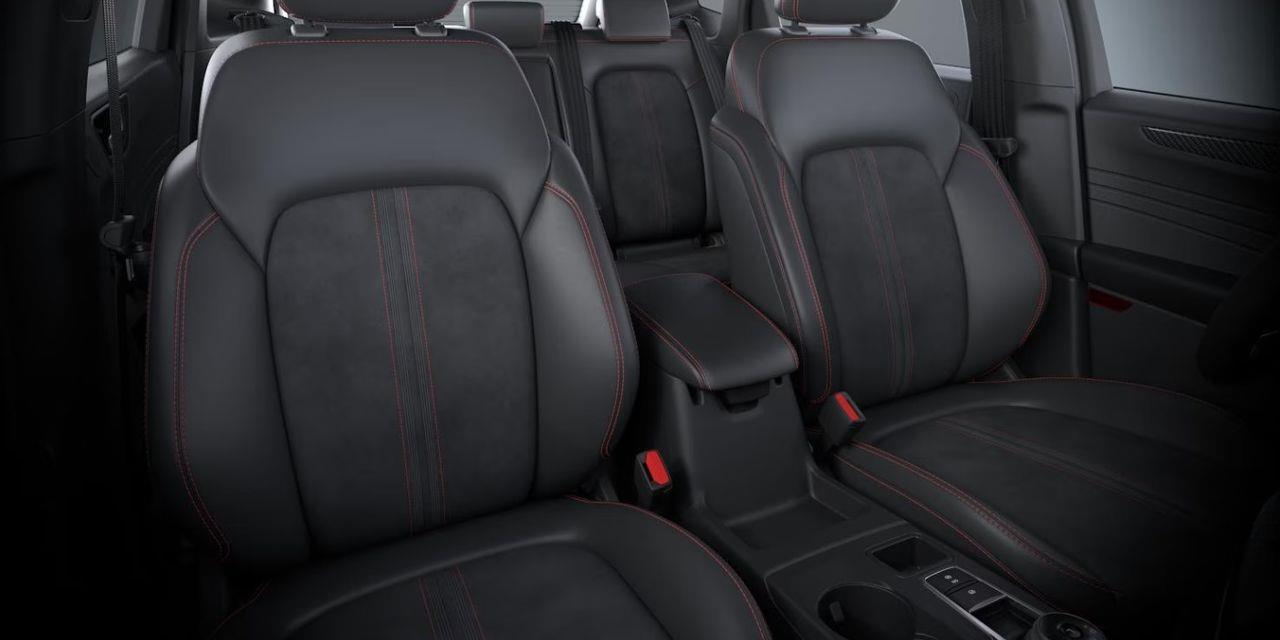 Przednie fotele – tapicerka częściowo skórzana Nova/Neosuede z elementami skóry ekologicznej Cuir i przeszyciami w